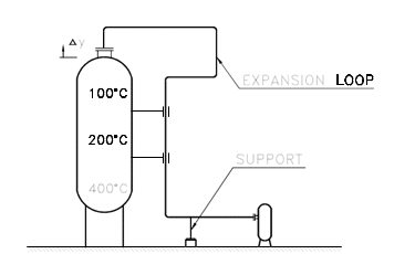 When supporting a line coming from a tall vessel and the line temperature is different from vessel, itshould be supported from vessel at the neutral point with respect to vessel. Such point is normally near thenozzle itself The pump should be connected through flexible loop connection to avoid nozzle loading.